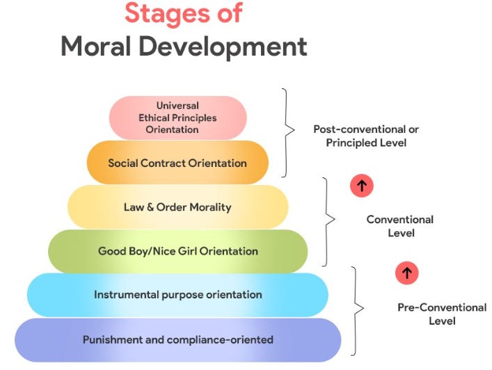 That is because a human has to develop the capacity to take the perspective of others (and some, sadly, never do). It is not something we are born with. In fact, it wouldn’t be until I was seven or eight that I would be able to tell you the adult was seeing green. As you can see from the diagram, in fact, there are many more stages available to us - which yours truly is still diligently climbing, albeit slowly with many faltering steps - which basically equates to an increasingly complex conception of self.
